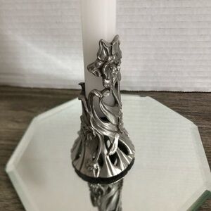 Add a touch of elegance to your home with this pewter candle holder. Perfect for creating a warm and inviting atmosphere. Would be a great gift for a birthday in March (flower of March is a Daffodil). Note: candle and mirror not included.