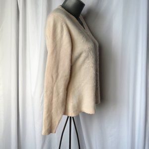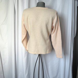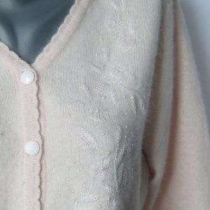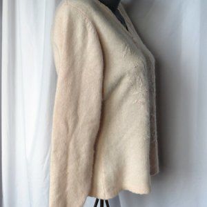 A lovely vintage angora wool sweater by Marks & Spencer label St. Michael. From the 1990s, with floral beaded embroidery on the front & scalloped edging along the neck & the hem. It is in good vintage condition, there is some piling but overall is stilla beautiful sweater. Soft & cozy!