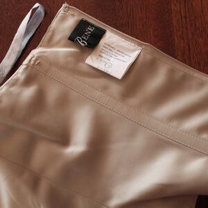 A NOS beige, Tutto Bene two piece evening gown, in excellent condition, only the skirt needs steaming. The optional shoulder straps are still basted to the bodice, and can be hooked into corresponding thread loops if desired. Tag reads size 10.
