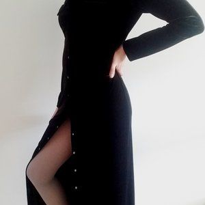 Description: 1990's Black Velvet Maxi Dress with Snap Buttons