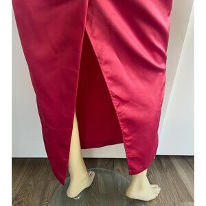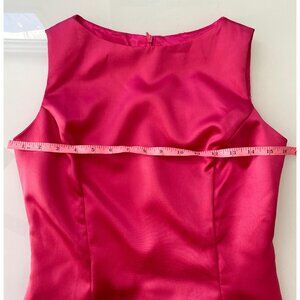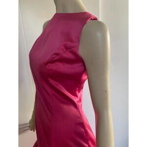 Hot pink sheath dress made in the USA by famed designer Jessica McClintock. Sleeveless with front bottom slit and back zipper. From the bridal collection, but works as a regular party dress.