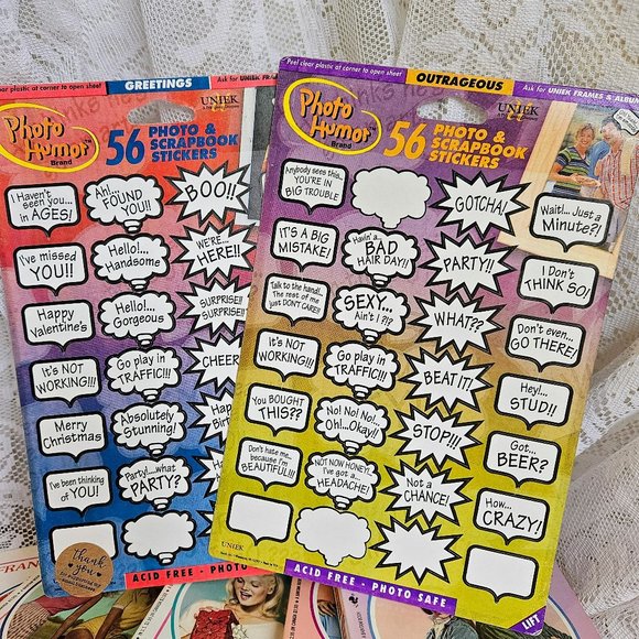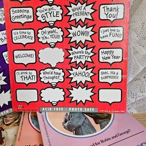 Set of 2 double sided photo caption stickers. Made in 1999.