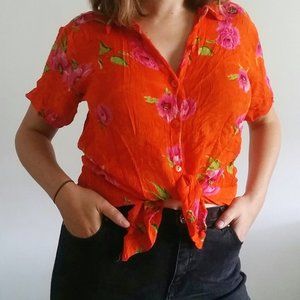 Description: 1990’s Tequila Sunrise Rayon Floral Top