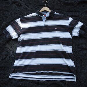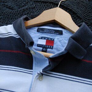 1990s- Tommy Hilfiger Striped Polo T- Shirt Size L