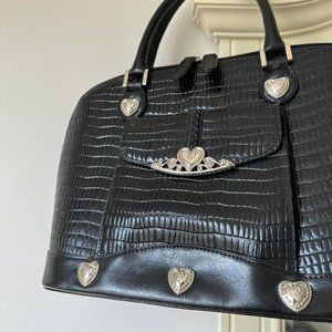 ❦ 1990s Vintage M.C. Leather Croc Handbag with Silver Heart Accents ❦