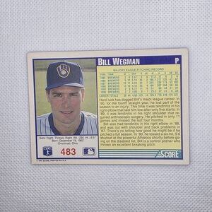 1991 Score Bill Wegman Milwaukee Brewers #483 Baseball Card - in excellent condition.