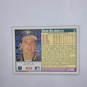 1991 Score Dann Bilardello Pittsburgh Pirates #659 Baseball Card - in excellent condition.