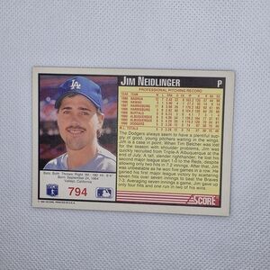 1991 Score Jim Neidlinger Los Angeles Dodgers #794 Rookie Baseball Card - in excellent condition.