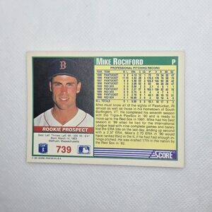 1991 Score Mike Rochford Boston Red Sox #739 Baseball Card - in excellent condition.