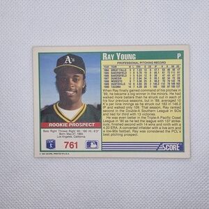 1991 Score Ray Young Oakland Athletics #761 Rookie Prospect Baseball Card - in excellent condition.