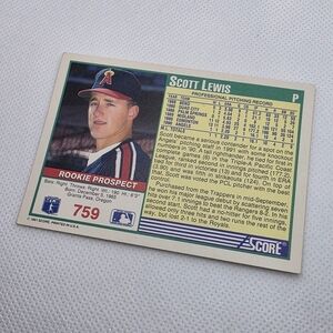 1991 Score Scott Lewis California Angels #759 Rookie Prospect Baseball Card - in excellent condition.