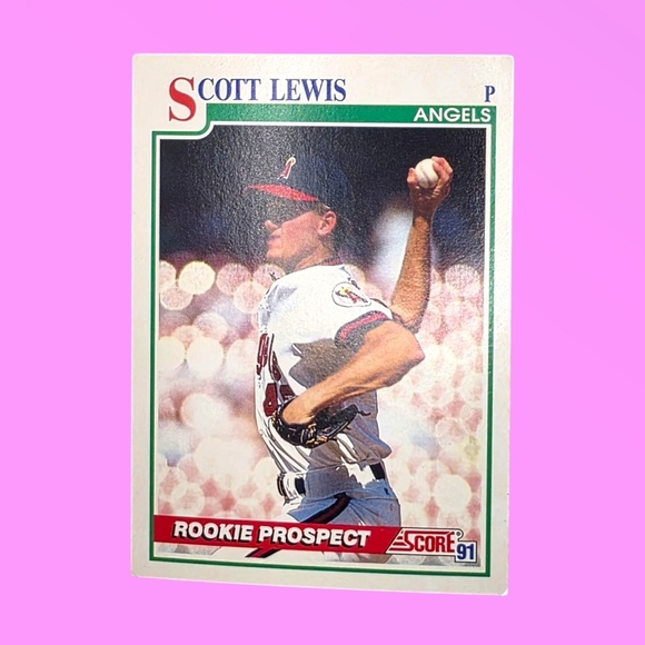 1991 Score baseball card featuring Scott Lewis, a pitcher for the California Angels. The back features all of his stats as a rookie prospect.