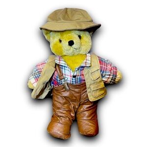 1992 Tender Hearts Treasure Plush Bear Fishing Outfit - Hat, Vest, Waders & Net