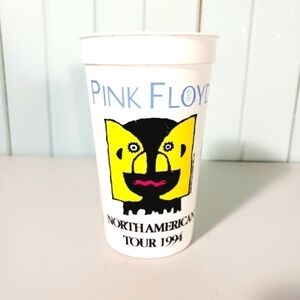 Official 1994 plastic cup produced for the North American tour to promote 'The Division Bell' album, features two different 'two heads' logo with the text 'Pink Floyd' in blue at the top and 'North American Tour 1994' in black at the bottom!)