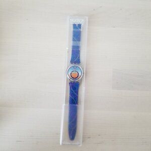 1994 Vintage Swatch "AZIMUT", GK179. In excellent condition, never worn. Original box included. Battery pictured but is not functional and will be removed prior to shipping. Case is 33 mm diameter.