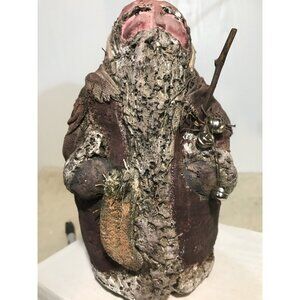 This collectible set of two Santa figurines by Arlene M. Wobler showcases intricate design and craftsmanship. Made in 1995, these unique pieces reflect the artistry of Woblers Woods. Distinctive detailing and rustic aesthetics offer a timeless addition to any collection or decor setting.