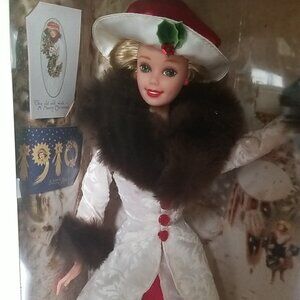 New in box. e snowfall creates a memorable winter scene, so too will holiday memories Barbie. Elegantly dressed in an early 20th century inspired outfit, she commemorates the 85th Anniversary of Hallmark cards. Second in a series of special edition Barbie dolls created exclusively for Hallmark, Holiday Memories Barbie was inspired by antique greeting card artwork from the Hallmark design collection. She adds a festive touch to any holiday season. Dressed for a stylish afternoon downtown, Holiday Memories Barbie look sensational in her dazzling red satin dress picking delete a float coat with faux fur collar and sleeves. She plans on visiting the stationers shop, where she selects rep please replicas of holiday postcards from Hallmarks antique car collection. There are similar to those Mr. J. C. Hall, founder of Hallmark carry with him when he arrived in Kansas City in 1910. While greeting cards may have replaced the posters of yesteryear saying hello I'm thinking of you" is never out of style. Greetings from Holiday Memories Barbie doll.
