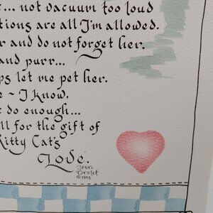 1995 Jean Drolet Cat Print My Cat Lets Me Live Here ADORABLE Fun and Funny
