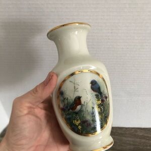 This elegant cream vase features a charming bird design, perfect for adding a touch of nature to your home decor. The subtle gold accents enhance its sophisticated look.