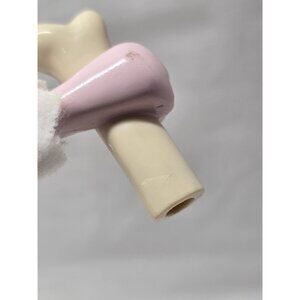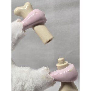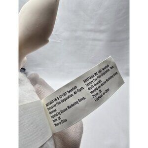 Please note that there is some discoloration present on both the rubber head and the plush fabric body. Due to its age, the suction cup's adhesive capability has diminished. Additionally, there are a few cracks in the plastic where the peg connects inside the suction cup. The feet have paint wear and paint chips. There is some discoloration and stains on the tush tag.