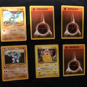 3 energy cards, 2 trainers card, 1999 Pikachu, 1999 Machop and 1999 Machoke.