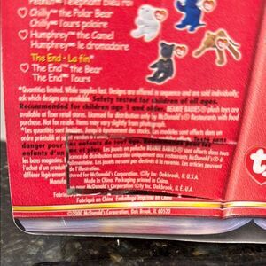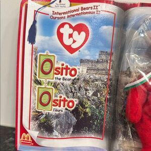1999 Osito The Bear. International Bears II McDonalds. Teanie Beanie Babies TY . Package slightly opened. Noted in pics. Experience the vibrant charm of Ty's red plush stuffed animal, a delightful addition to any toy collection. This cuddly companion features the iconic Ty heart-shaped tag and comes in its original packaging, making it a perfect collectible. The bright red color and soft texture make it an irresistible toy for enthusiasts and collectors alike.