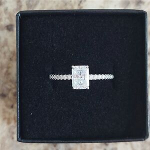 1 Carat Ice Cut Rectangular Moissanite 925 Silver Engagement Wedding Ring