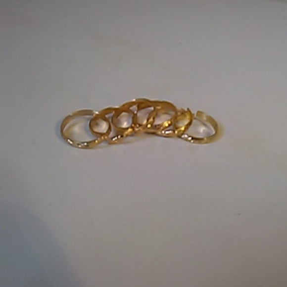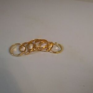 A coordinated set of six slim gold rings for versatile stacking. Lightweight and comfortable for everyday wear. Mix and match to create layered looks with a polished gold finish. Perfect as a subtle, elegant accessory in gold.