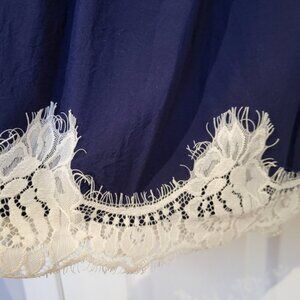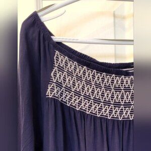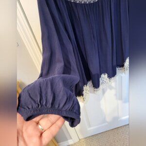 1X Boho Royal Blue Smocked Blouse with White Lace Eyelash Hem. A reversible blouse, very soft light and flowy.