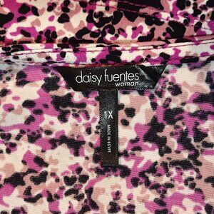 1X | Daisy Fuentes | Speckled Short Sleeved Ruched V-Neck Blouse
