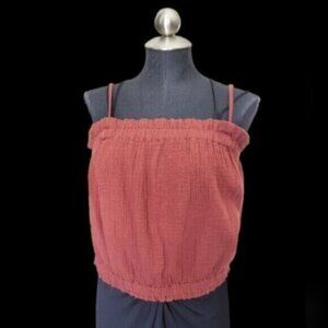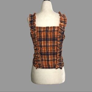 💛 1X 💛 NWT Anthro Tank Top Plaid Ruffled Ruched Cropped Plus Size
