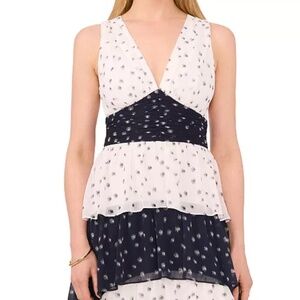 1.state Womens Colorblocked Tiered Maxi Dress New Ivory Dark Indigo Size 10 NWT
