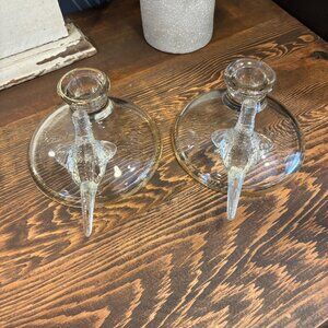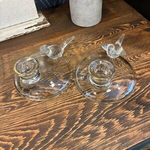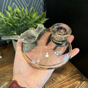 2 1930s Vintage Jeannette Glass Candlestick Holders with Pheasant Motifs