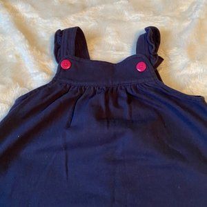 Carter's jumper dress in size 4. Navy in colour with 2 flowers on front. Dress is unlined. Dress is 100% cotton. Machine Wash cold. This post is for one item only. Mix and match for bundle price. Colour depends on device/screen settings and lighting in pictures. All items are from my smoke free home.