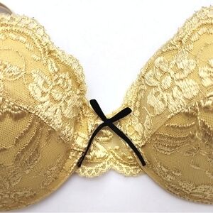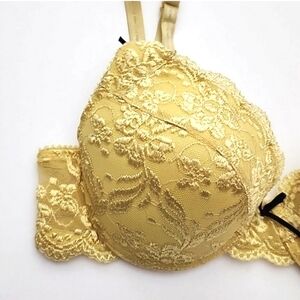 ⭐️2/ $30⭐️ La Vie en Rose Yellow Satin Lace Underwire Push Up Bra 34C