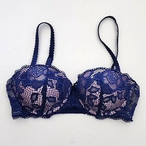 ⭐️2/ $30⭐️ la Vie en Rose Convertible Bra Blue Satin Lace Pink Interior Size 34B