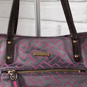 2 / $30.00 - Tommy Hilfiger Grey & Pink Patterned with Brown Handles Handbag
