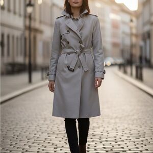 Sleek and stylish trench coat. Features button closure and adjustable cuffs. Ideal for versatile wear.