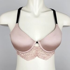 ⭐️2/ $40⭐️ La SENZA So Free Underwire Light Pink Lace Black Trim Padded Sz 34B
