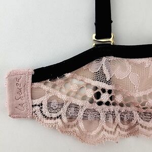 Excellent pre-owned condition, La Senza So Free underwire bra in light soft pink with lace feature, black trim, padded cups and adjustable straps, size 34B.
