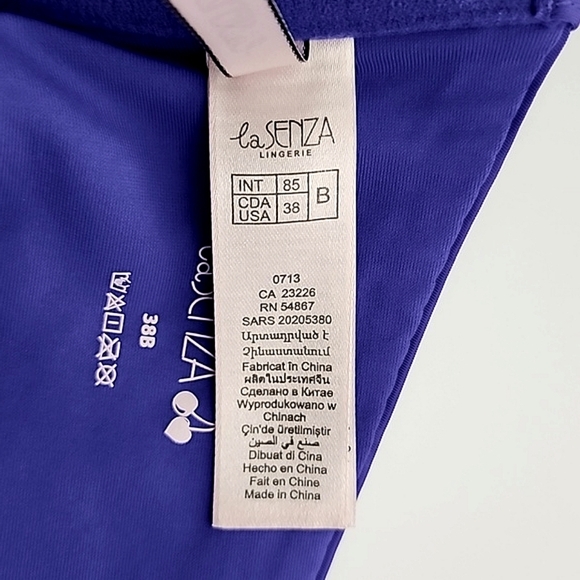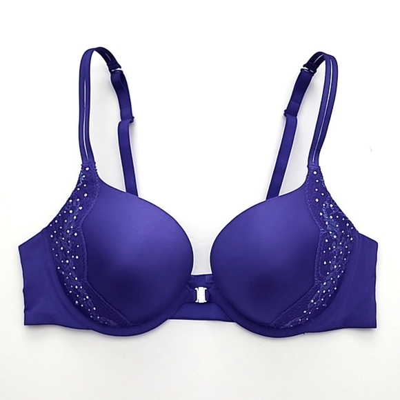 Excellent pre-owned condition, La Senza underwire push-up bra in a deep purple hue with lace and rhinestones detailing, size 38B.