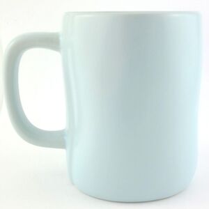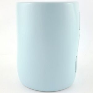 NEW, Rae Dunn Artisan Collection by Magenta mug with a matte pale blue interior and exterior and fun large black letters CUTE AS A BUNNY etched on one side!