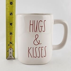 NEW Rae Dunn Artisan Collection by Magenta mug in glossy white with fun large red letters HUGS & KISSES engraved on one side and a glossy white interior.
