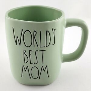 ⭐️2/ $50⭐️ Rae Dunn Artisan Mug Pale Green Large Black Letters WORLD'S BEST MOM