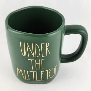 ⭐️2/ $50⭐️ Rae Dunn Green Coffee Mug UNDER THE MISTLETOE Gold Letters