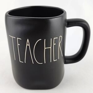 ⭐️2/ $50⭐️Rae Dunn Artisan Flat Black Ceramic Mug White Large Letters TEACHER