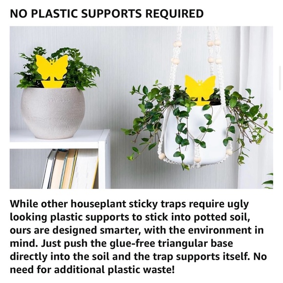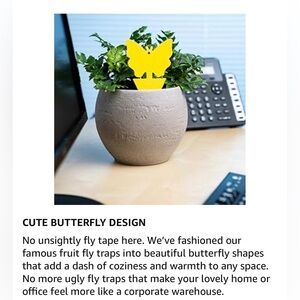 Bright yellow butterfly-shaped fly trap. Non-toxic and chemical-free. Perfect for kitchens and gardens. Sample pack contains three traps.