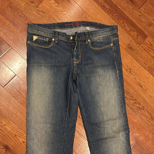2 B Bebe boot cut rhinestone bling pockets straight skinny jeans Sz