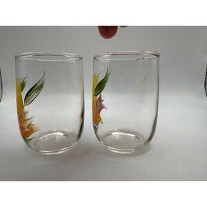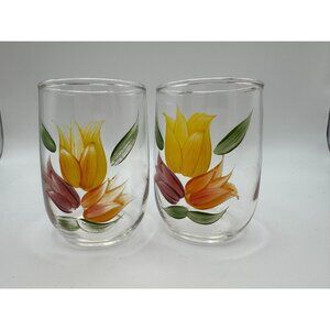 2 Bartlett Collins Gay Fad Handpainted juice glasses Tulips Red yellow 3.25"