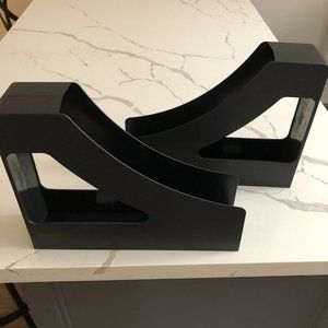 2 Black Magazine/Paper/Book Holders. Dimensions: 12.5"H x 9.5"long x 3"depth. Great condition. Keep organized.